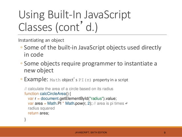Ch 7 Object Oriented Javascript from image.slidesharecdn.com Use the keyword class to create a class. A class encapsulates data and functions that unlike other programming languages such as java and c#, javascript classes are syntactic sugar. Let's see the following example. Javascript classes are templates for javascript objects. How to define a class, initialize the instance, define fields and methods, understand the private and public fields, grasp the static fields and methods. In es5, the classes are functions. In other languages like java or c#, the class can have one or more constructors. It determines what the properties of an object are and how it behaves.