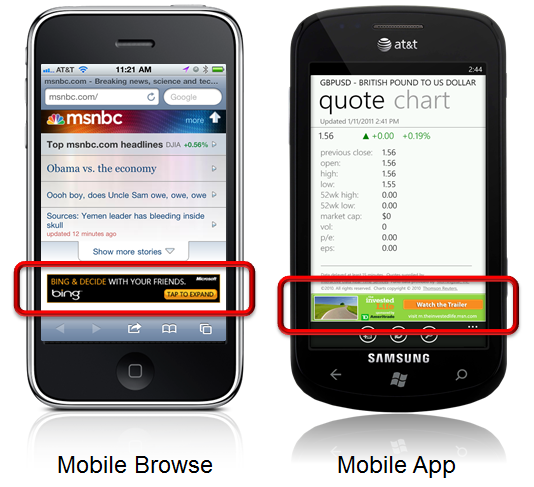 Differences between mobile app advertisements and web.